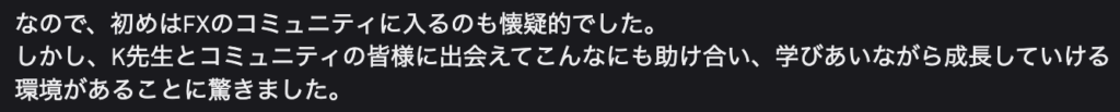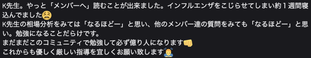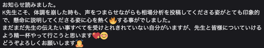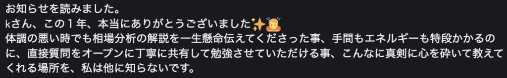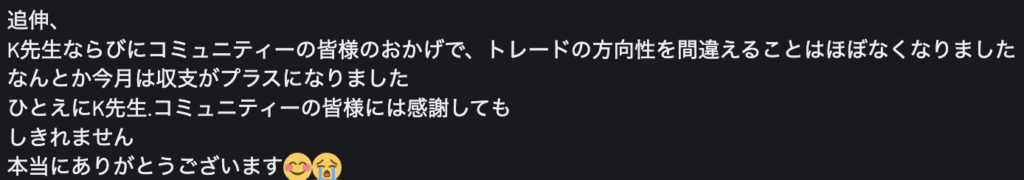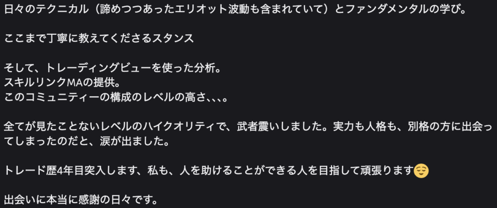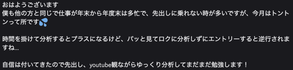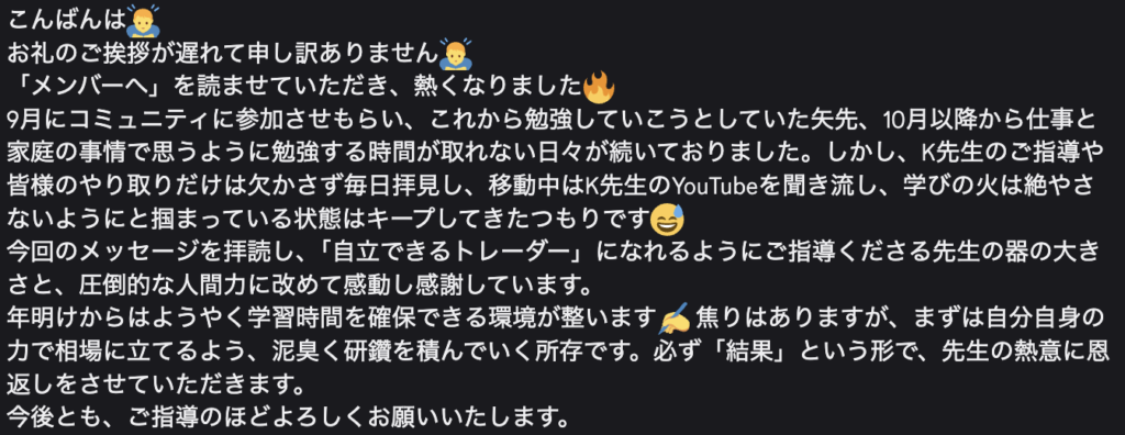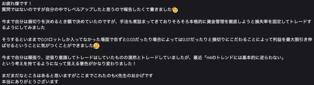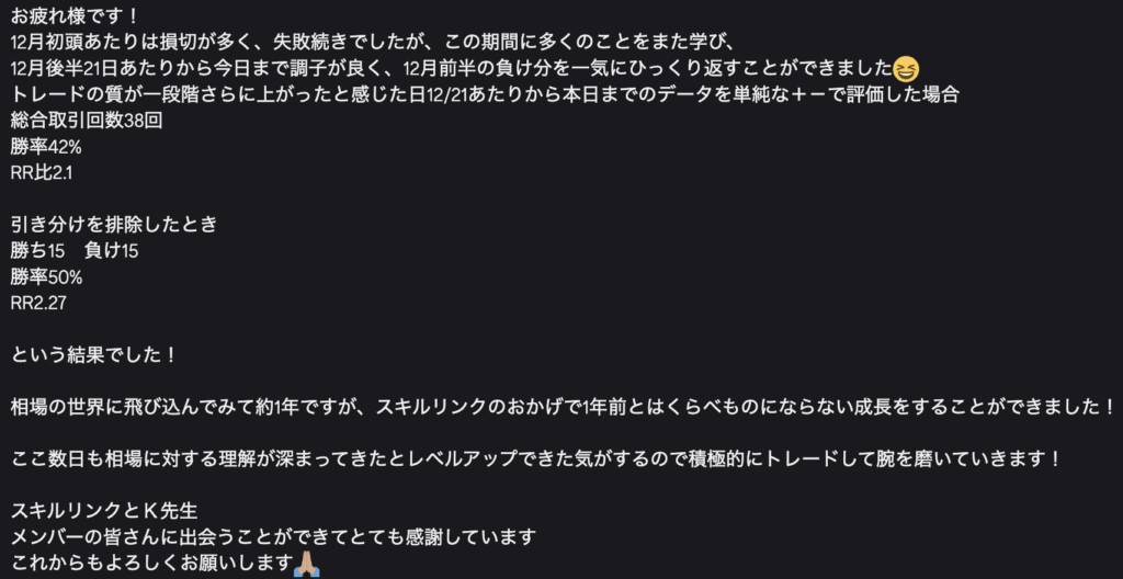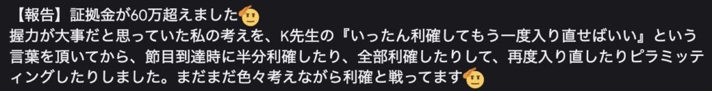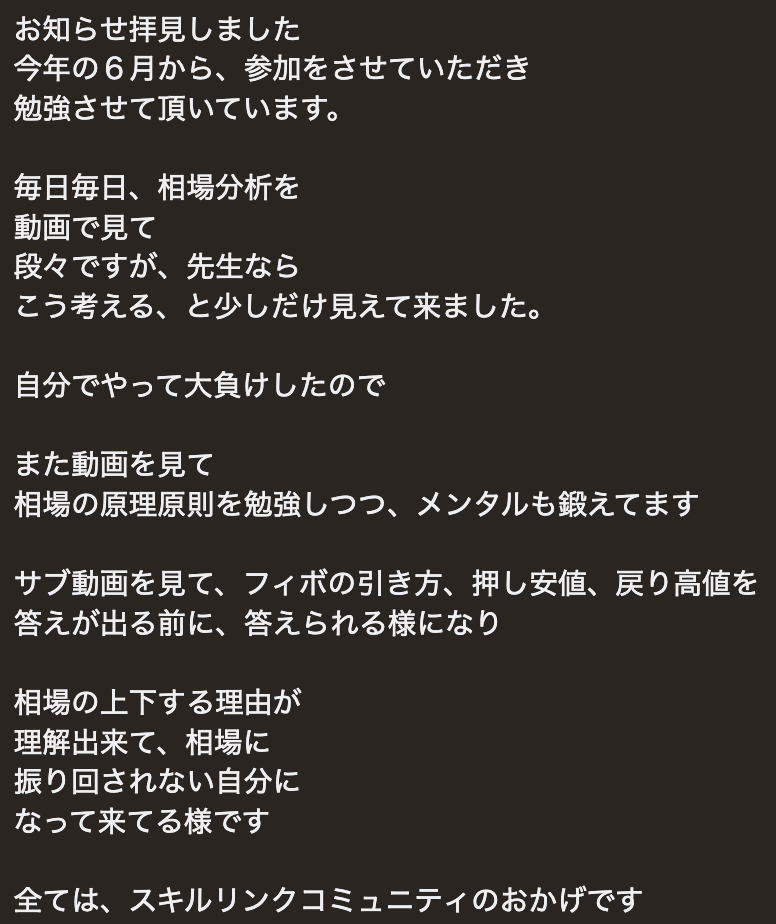 ・感情に振り回されず、落ち着いて相場と向き合えるようになった