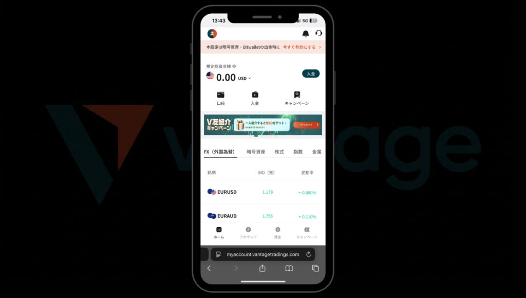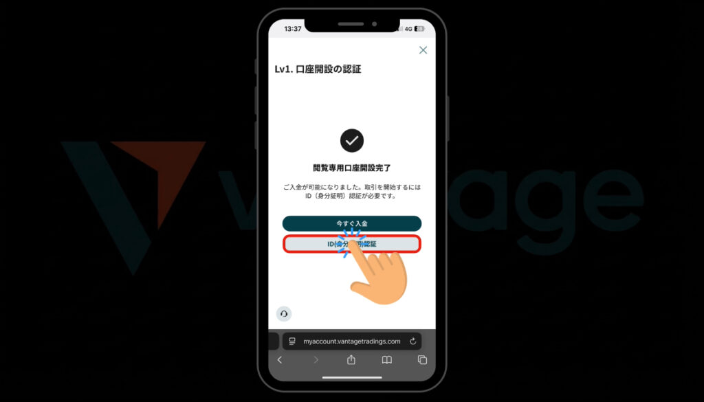 ID(身分証明)認証を行わないと入金・トレードができないので必ず先に認証を行なってください。