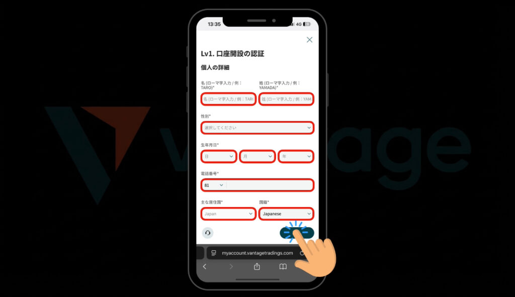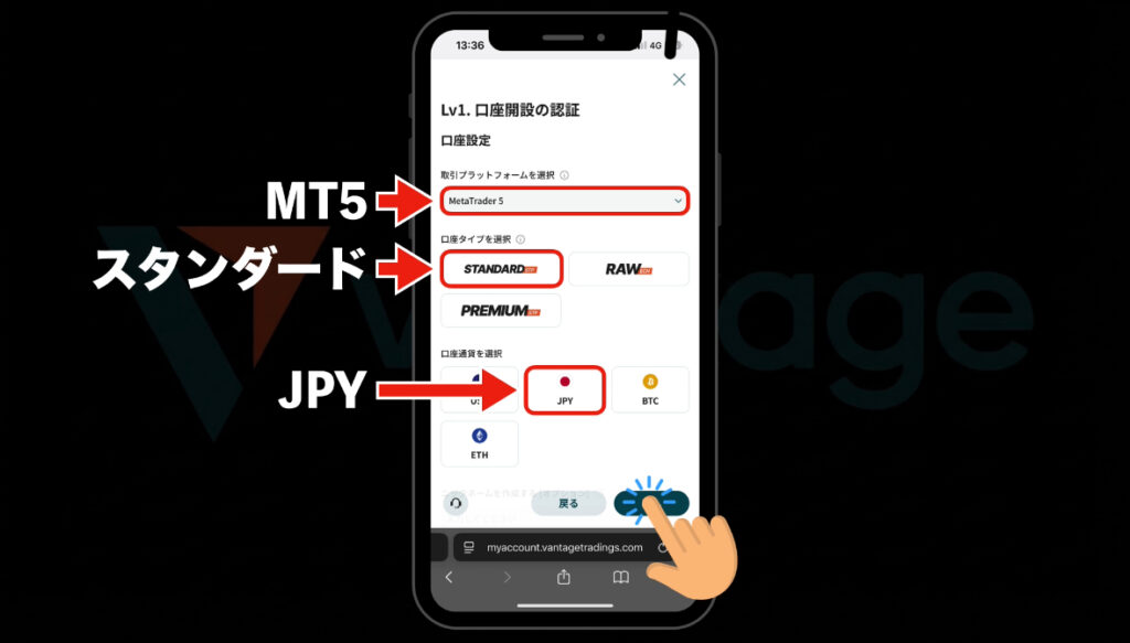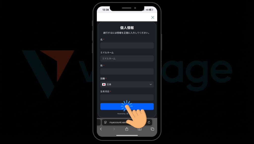 全て入力が完了したら、「口座開設する」をタップし、次に進みます。