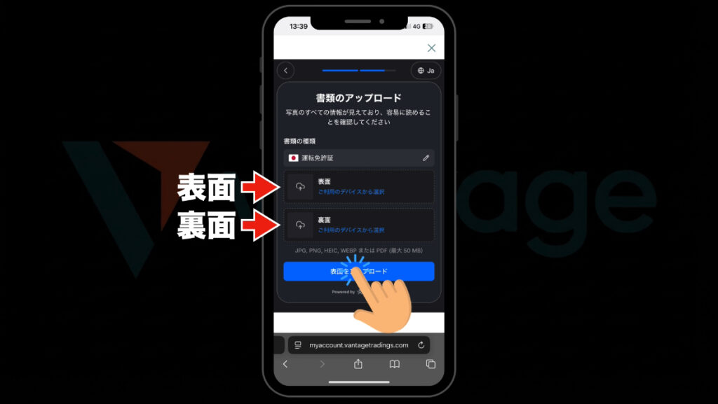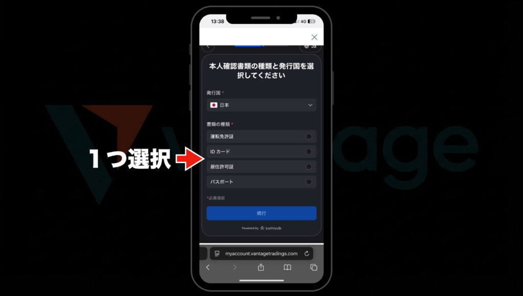 ⑩ 発行国・提出する本人確認書類にチェックを入れる