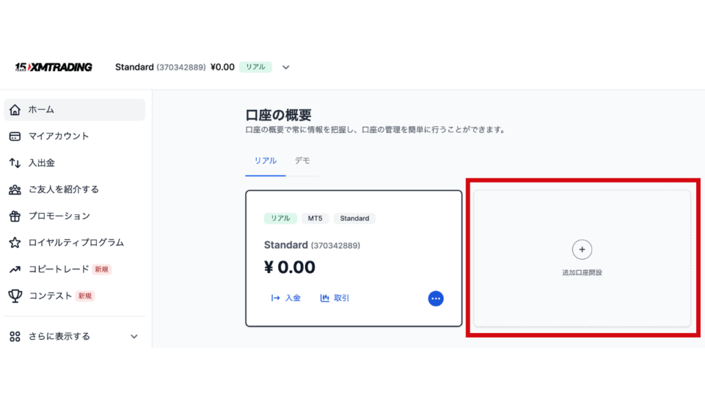 XM追加口座開設方法