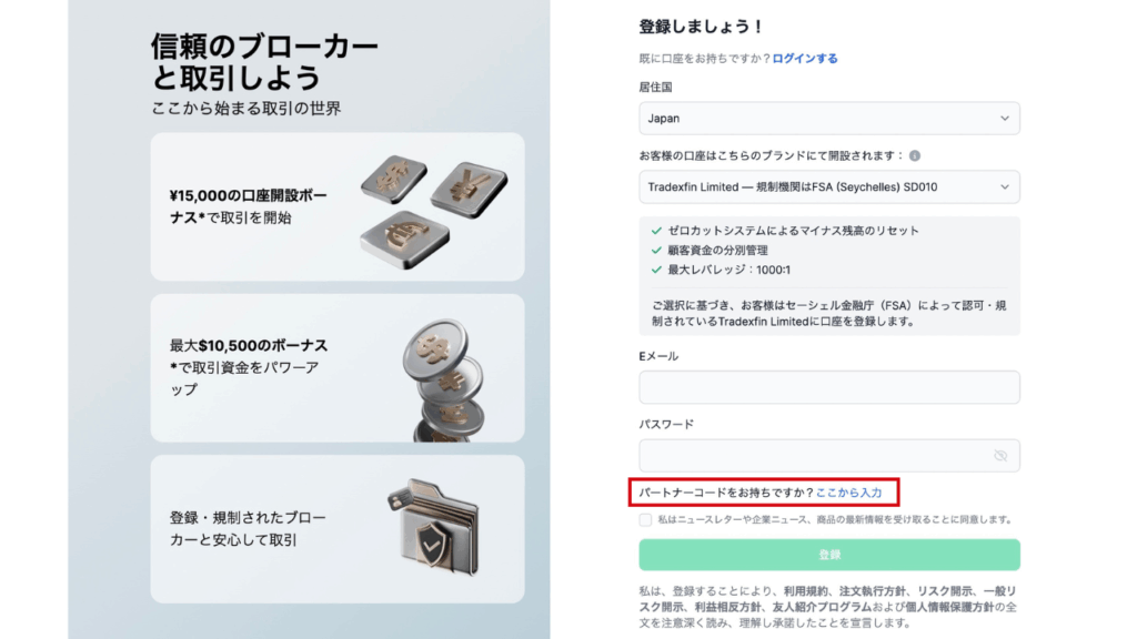 新規口座開設の際には、必ずパートナーコードをご入力ください。