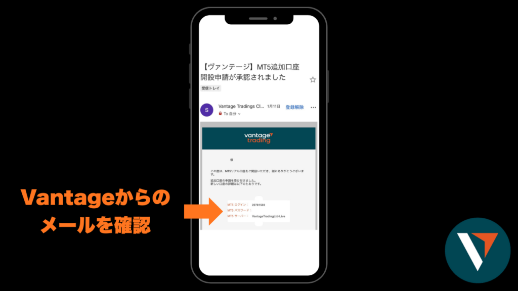 まず、口座開設時にVantageから届いたメールを確認します。