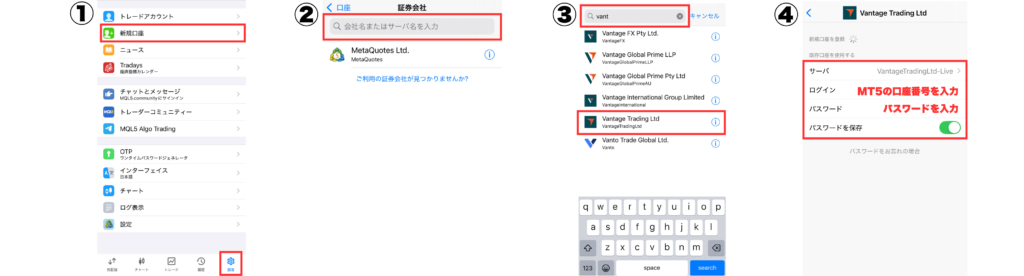 ステップ4:VantageとMT5を紐付け